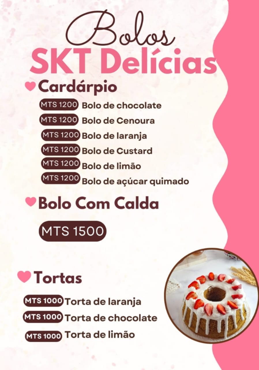 VARIOS TIPOS DE BOLOS CASEIRO APARTIR DE 1000.00 METICAIS, BOLOS DE CENOURA, CHOCOLATE, TORTAS, ETC.. DISPONIVEL PARA ENCOMENDA E ENTREGA. | SIM |